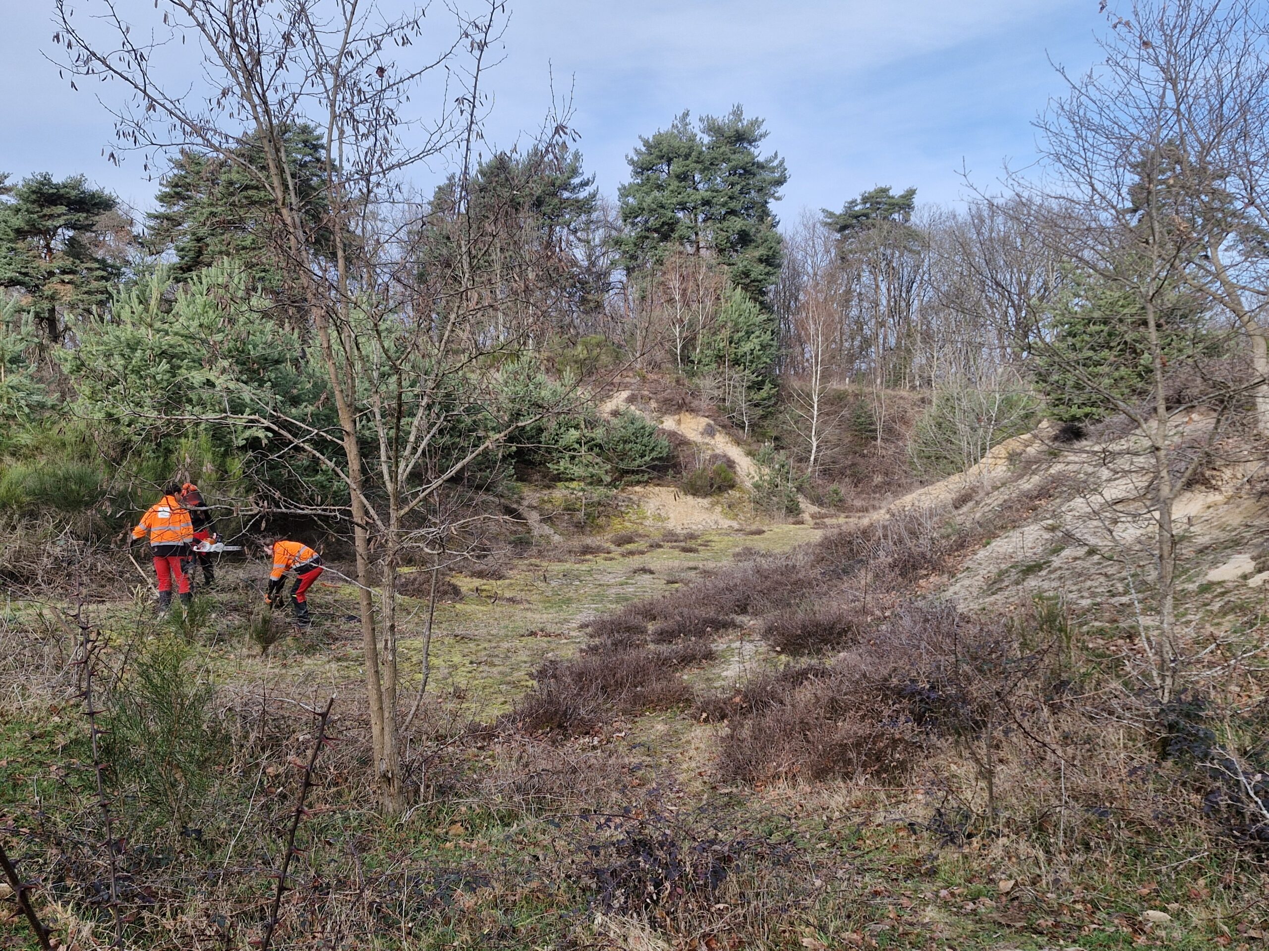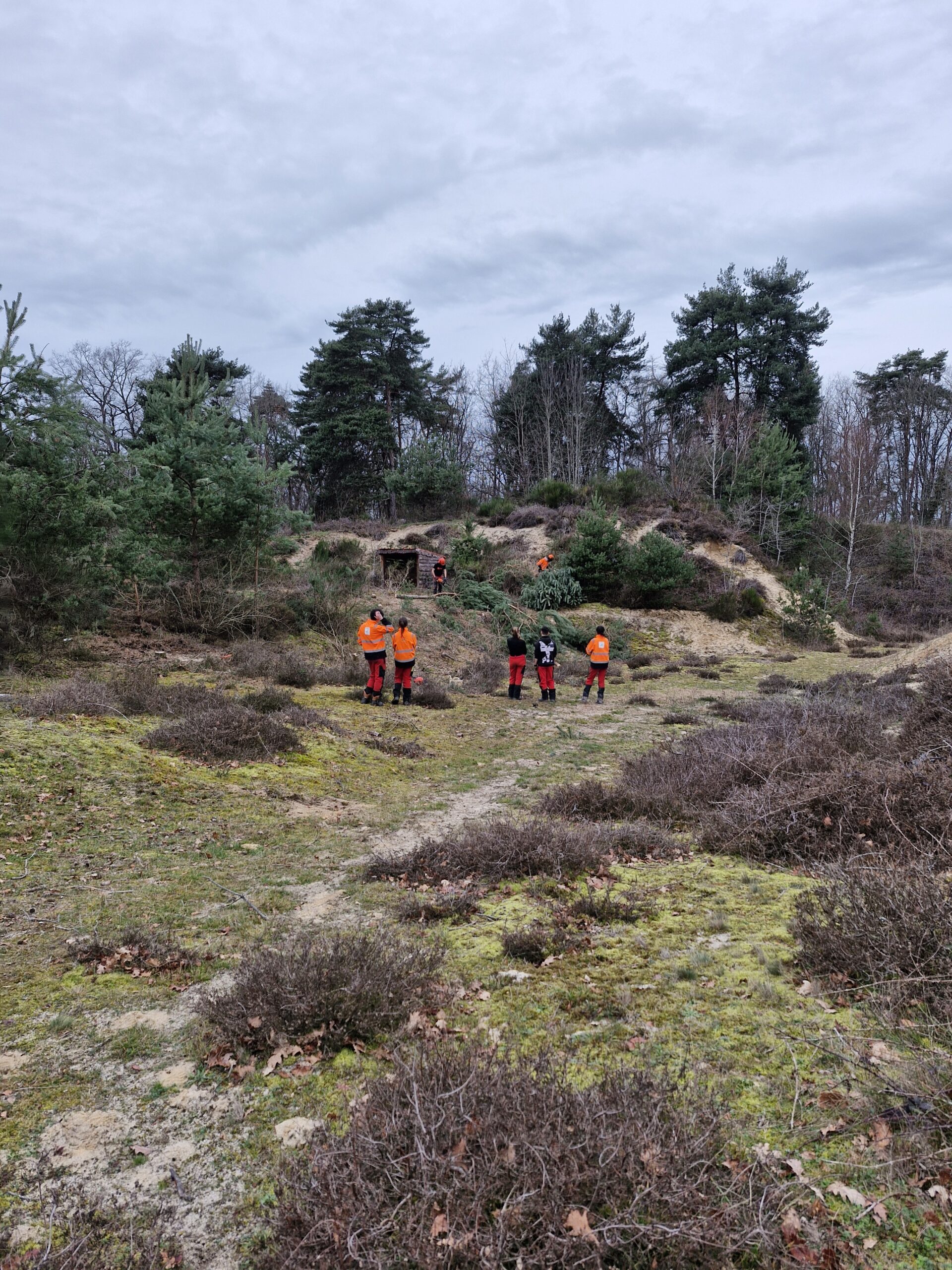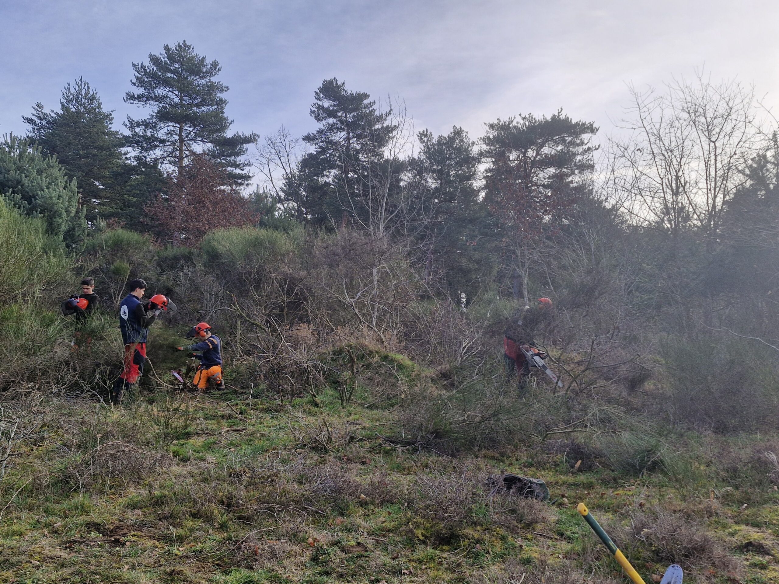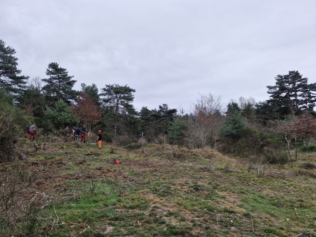 Dans le cadre d’une convention entre la commune d’Orléat et le lycée de Noirétable, des élèves interviennent sur les dunes aux côtés des acteurs du territoire. Cette année, ils sont intervenus en février, encadrés par leurs enseignants et accompagnés par le Parc. Ils participent concrètement aux travaux de gestion : débroussaillage ciblé, entretien des milieux ouverts, découverte des enjeux écologiques du site.