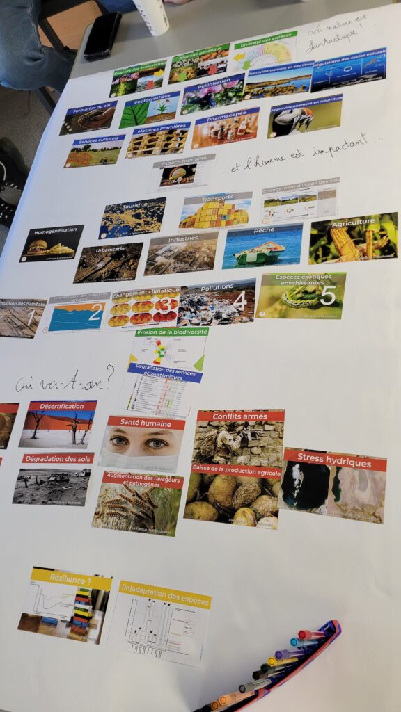 Créée en 2019, la Fresque de la Biodiversité est un atelier ludique et collaboratif qui vise à sensibiliser les participants aux conséquences de l’érosion de la biodiversité. Grâce à une approche visuelle et interactive, les participants ont exploré les liens d’interdépendance entre les écosystèmes et les activités humaines, ce qui leur a permis de mieux appréhender la complexité des enjeux liés à la préservation de la biodiversité. L’atelier a non seulement permis de mieux comprendre les enjeux environnementaux actuels, mais a également favorisé des échanges enrichissants autour de pistes d’actions concrètes en faveur de la biodiversité. Des idées ont été évoquées concernant l’installation de ruches ou bien la plantation d’arbres sur les sites des entreprises afin de favoriser l’accueil de la biodiversité.