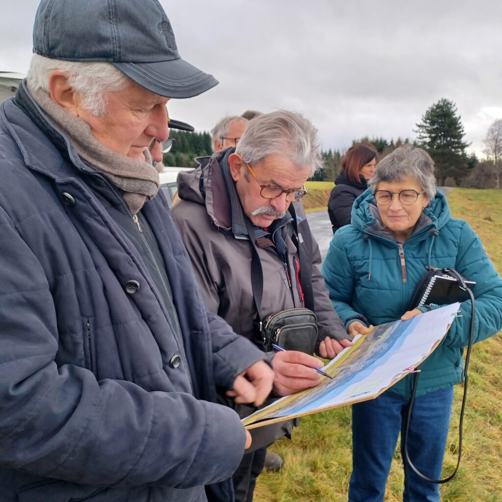 Accompagnées par des techniciens du Parc et de la communauté de communes Ambert Livradois Forez, ces lectures de paysage ont permis de croiser les approches : sensibilité des élus, expérience technique des accompagnateurs, témoignages d’élus « voisins » venus partager leur expérience d’autres PLU(i). Un temps d’observation collective, où chacun a pu confronter son regard à celui des autres pour mieux comprendre ce qui fonde l’identité de l’intercommunalité.