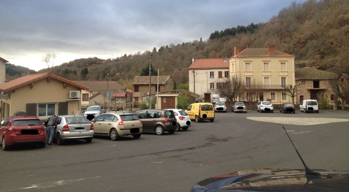 Aménagement de la place de la Barreyre à Auzon en 2019 et en 2025
