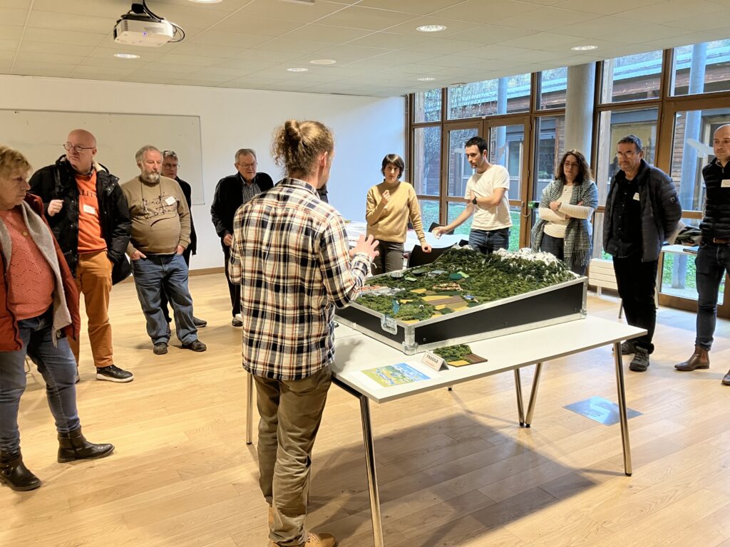 L’après-midi de cette journée a été consacrée à deux ateliers de sensibilisation. Les participants ont participé à un atelier sur la gestion des eaux pluviales à l’échelle d’un bassin versant. Le but était de mettre en avant la gestion de l’eau par une étude de cas sur le bassin versant de la Durolle, mettant en avant une meilleure intégration des ruissellements d’un territoire de moyenne montagne. Elle a permis de comprendre les bénéfices de la restauration et de la préservation des zones humides en amont ainsi que des pratiques sylvicoles durables pour la la gestion de l’eau en ville et dans les bourgs ruraux en aval.