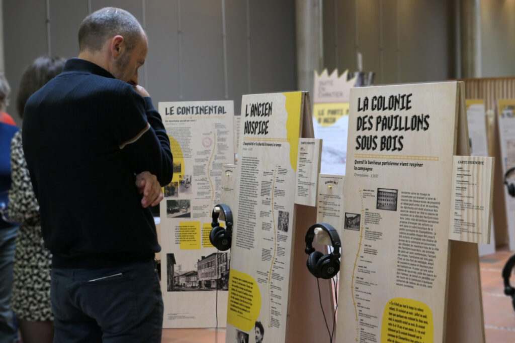 Ces bâtiments de « grande échelle » sont des lieux de croisement d’histoires. Aussi, pour recueillir leurs mémoires, des rencontres et des ateliers on été organisé en 2022-2023, avec des personnes ayant connu, travaillé ou vécu dans ces structures. Un inventaire d’ampleur qui a mobilisé élus et témoins, tous très intéressés par la démarche. La Grande Échelle est pensée comme une exposition itinérante mais aussi comme un support de rencontres, d’échanges et de projections.
