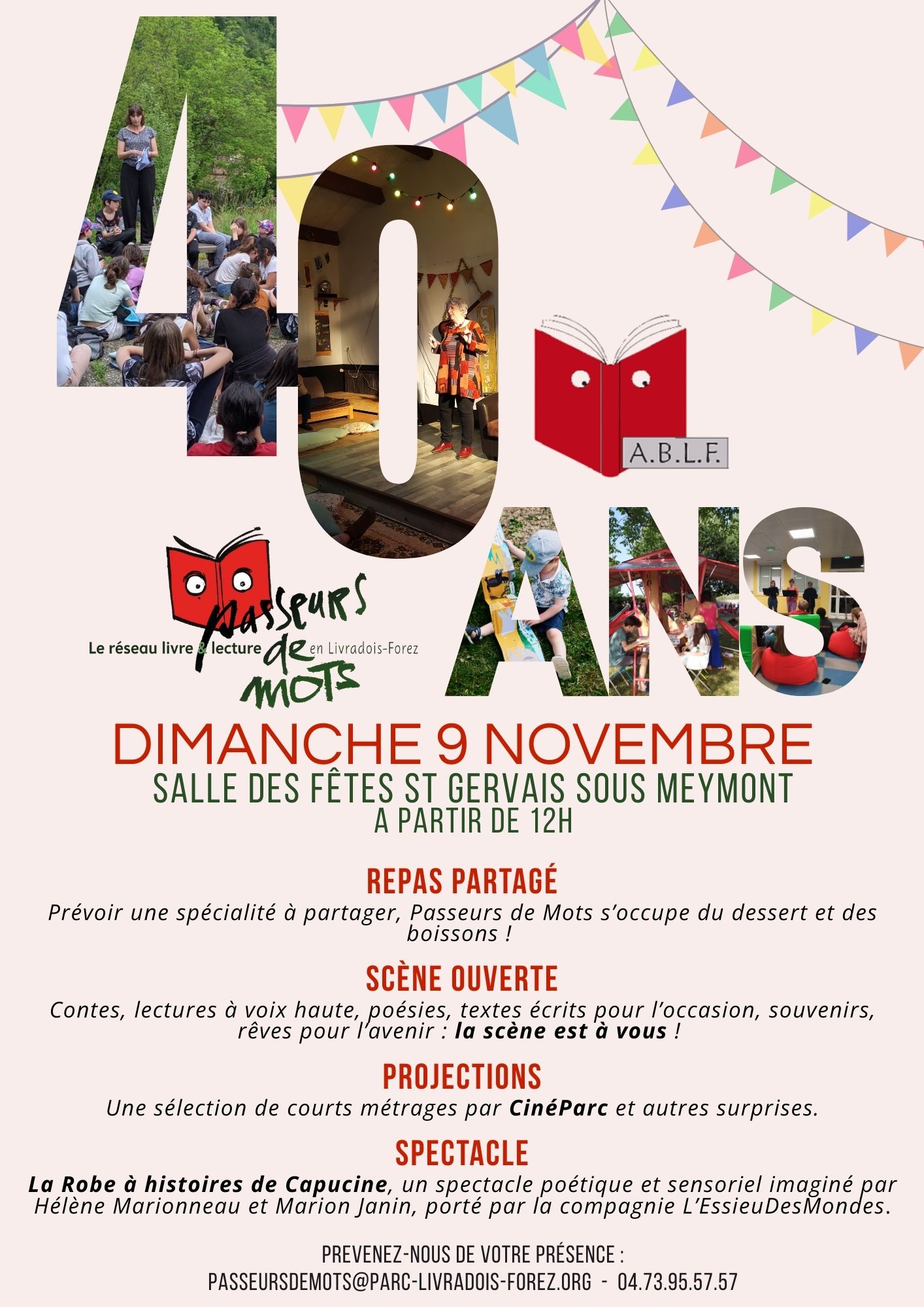Depuis 40 ans – de l’ABLF à Passeurs de Mots – l’association partage sa passion du livre, de la lecture et de l’oralité aux quatre coins du Livradois-Forez. Le 9 novembre 2025, pour marquer ces quarante années passées et celles à venir, Passeurs de Mots vous propose de partager une journée festive !