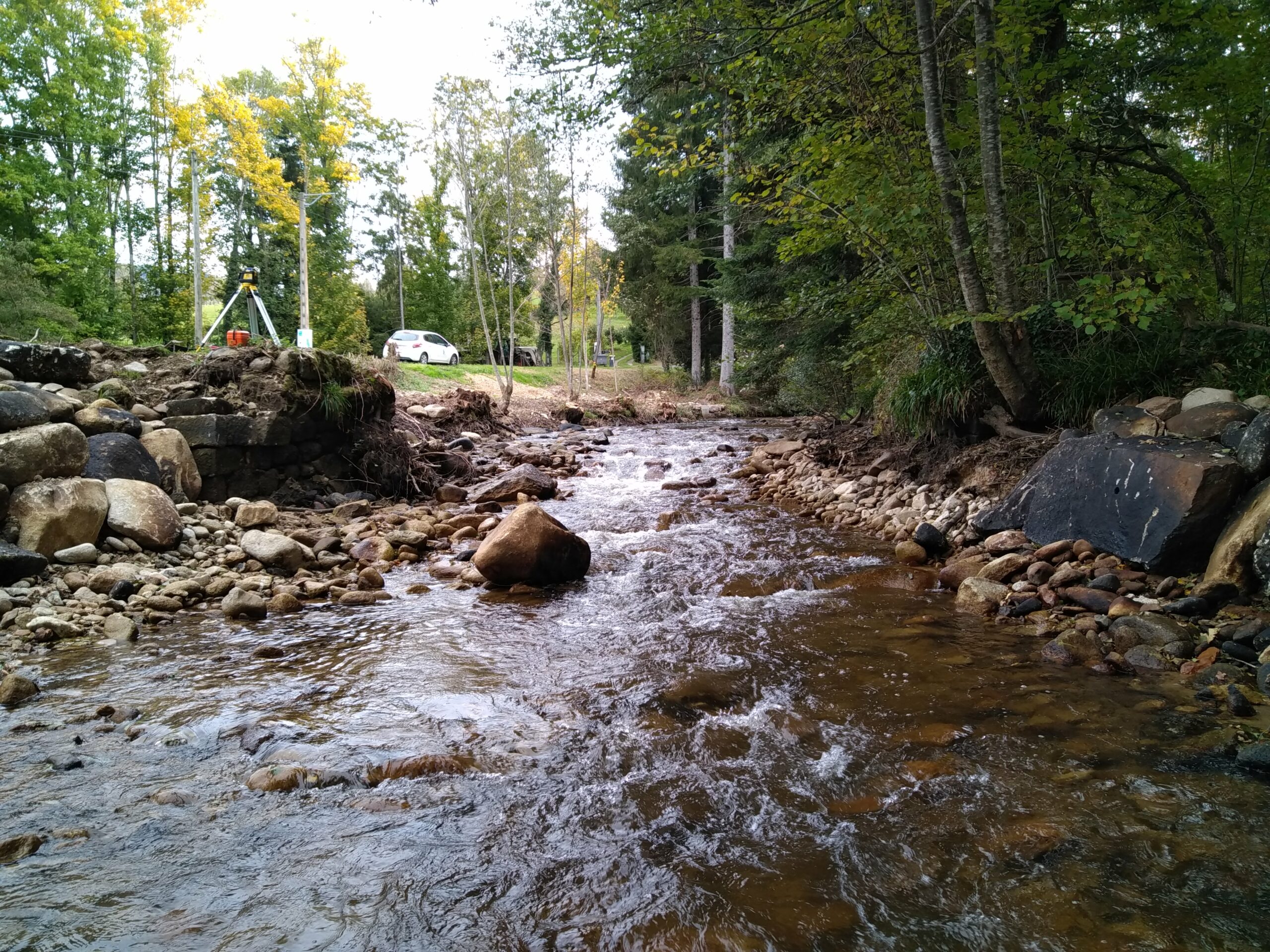 Le 14 octobre 2021 des visites de chantier ont été réalisées avec les propriétaires, l’Etat et les partenaires techniques et financiers pour observer la conformité des opérations, la remise en état des sites et le gain obtenu sur l’état écologique des cours d’eau.