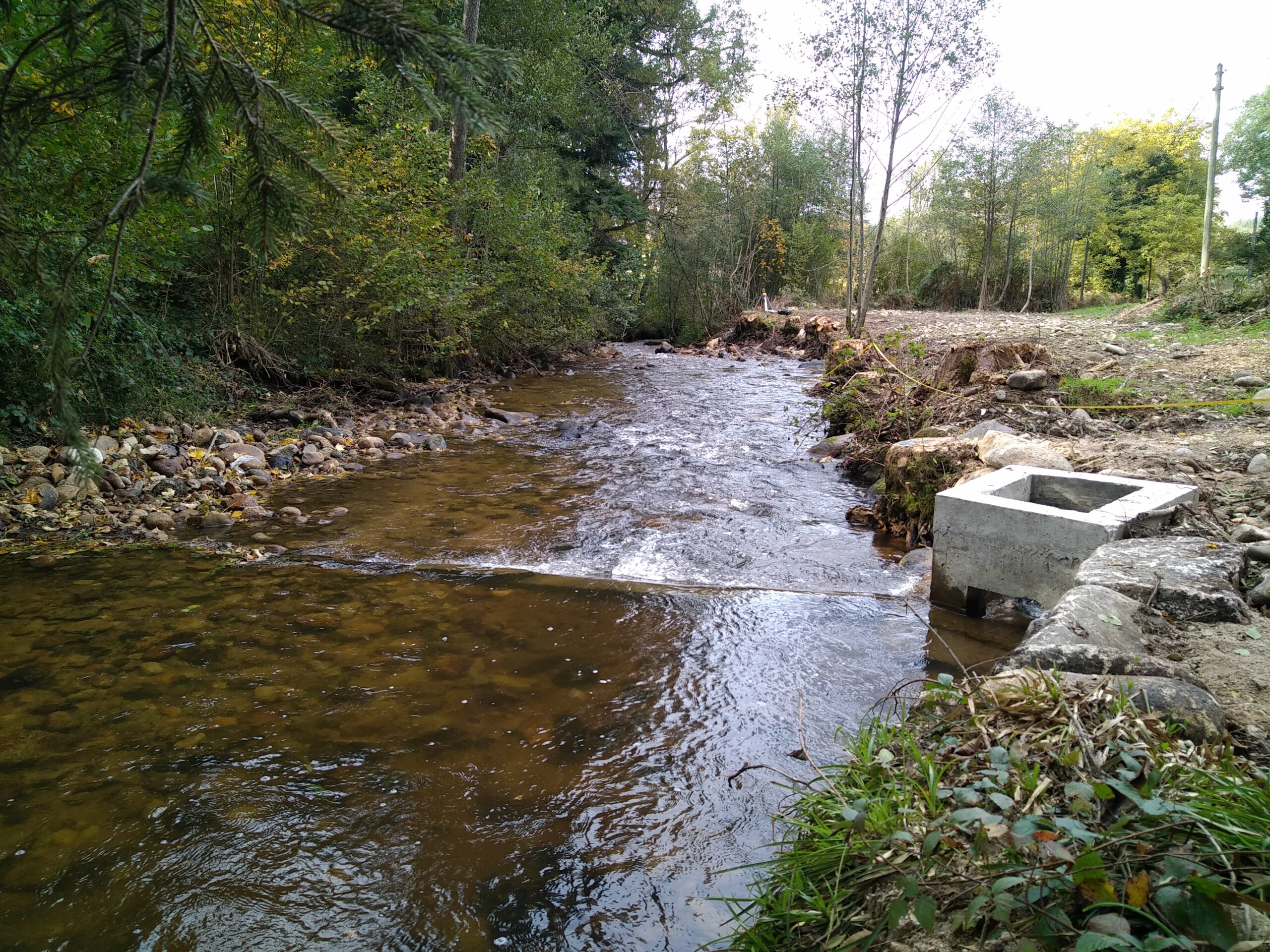La troisième opération a permis de concilier les enjeux écologiques et d’usage de l’eau qui persistait au niveau du site de l’ancien moulin du Sandier (commune de Vollore-ville) sur le Couzon. Pour cela, la destruction de l’obstacle s’est accompagnée par la construction d’une prise d’eau au fil de l’eau pour maintenir une certaine alimentation en eau dans le bief et garantissant une priorité pour le cours d’eau dans la répartition des débits. Ainsi, en plus de restaurer la continuité écologique sur cette portion du Couzon, particulièrement favorable à la préservation des truites sauvages, cette opération a permis à un propriétaire privé de répondre à ces obligations réglementaires demandées par l’Etat.